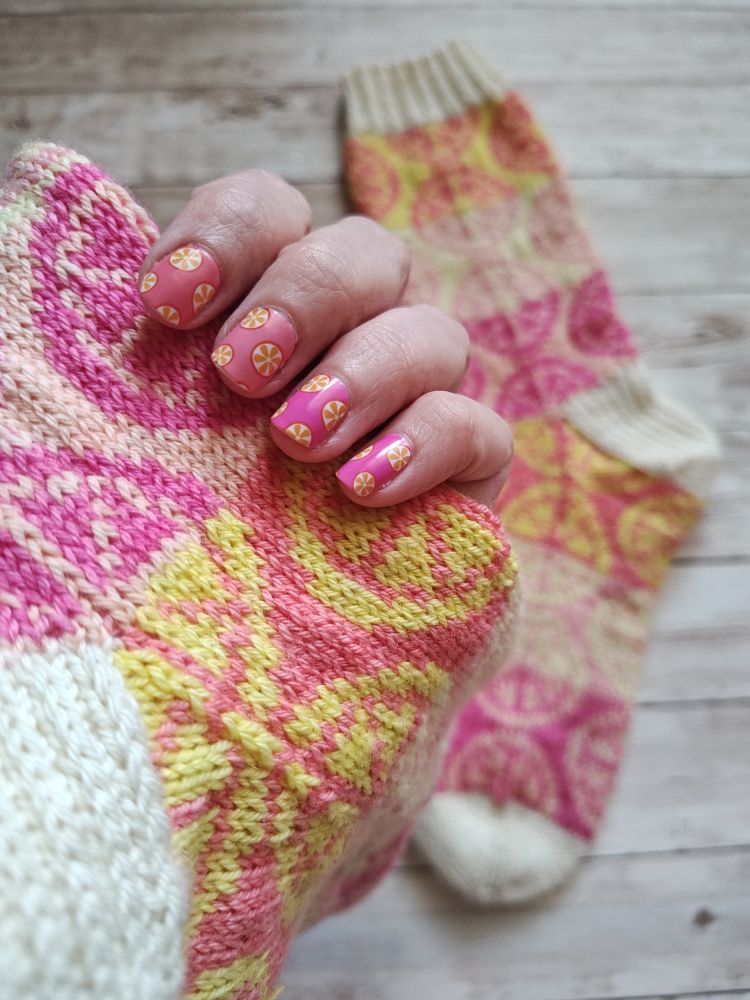 These are my new Lemony Pink socks!