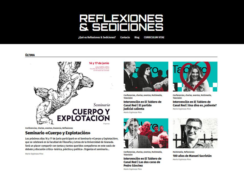 Encontraréis reflexiones que se mueven entre la política, la filosofía, la actualidad y mucho más en la forma de artículos, cursos, libros, podcasts y TV.