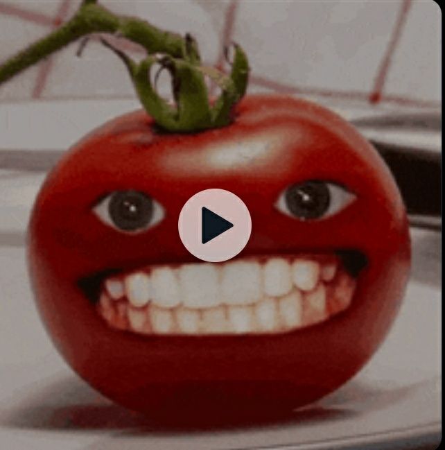 ALT: a cartoon tomato with a sad face on it 's face