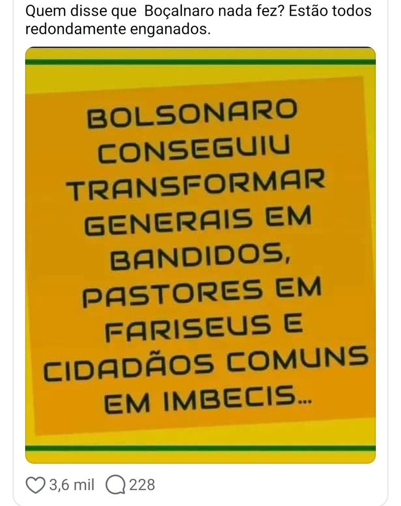O Brasil tem chão pela frente para liderar ao lado de todos os países subjugados pelos imperialistas, a Nova Democracia Humanitária Mundial! Hora dessas amebas que nada acrescentam ao Bem Comum voltarem para a latrina da História Política! Centrão, buh! #SóVotoEmQuemEstáComLula