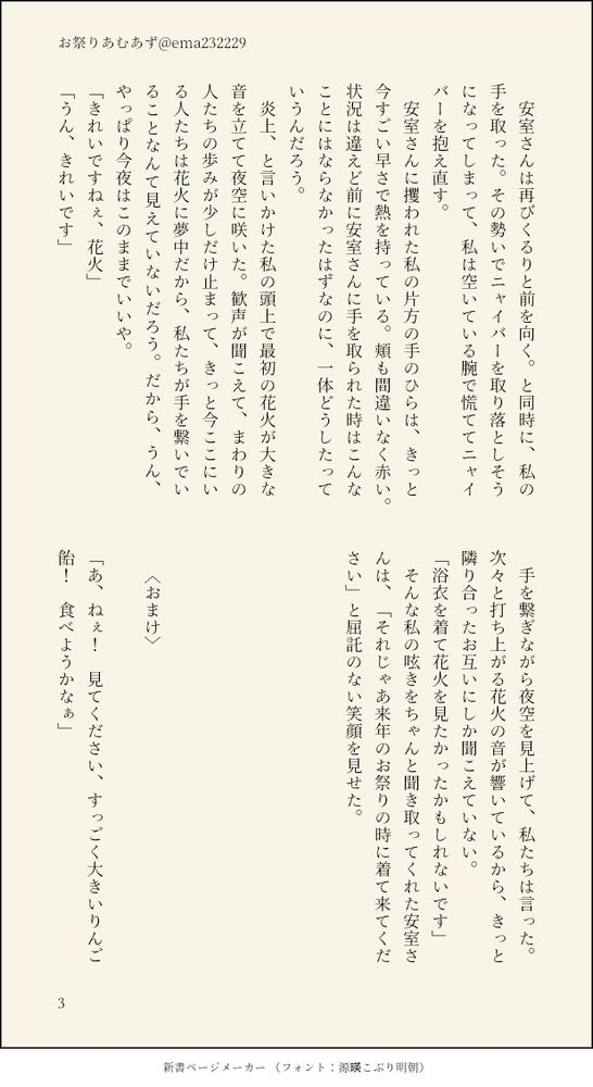 エマという名前でたまにあむあずで小話を書いている者です。