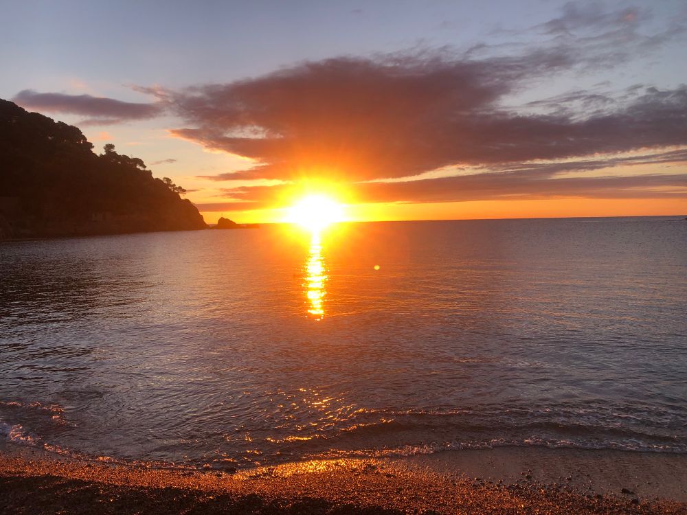 Encesa sortida de sol. Matinda freda, densa vent, mar calmada. Un matí esplèndid, que sembla d’hivern
