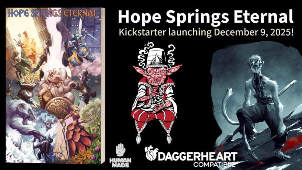 Humans sure love big round numbers, so please help us reach 300 followers! If someone you know plays Daggerheart, tell them about Hope Springs Eternal, a supplement with original content coming to KS on December 9!