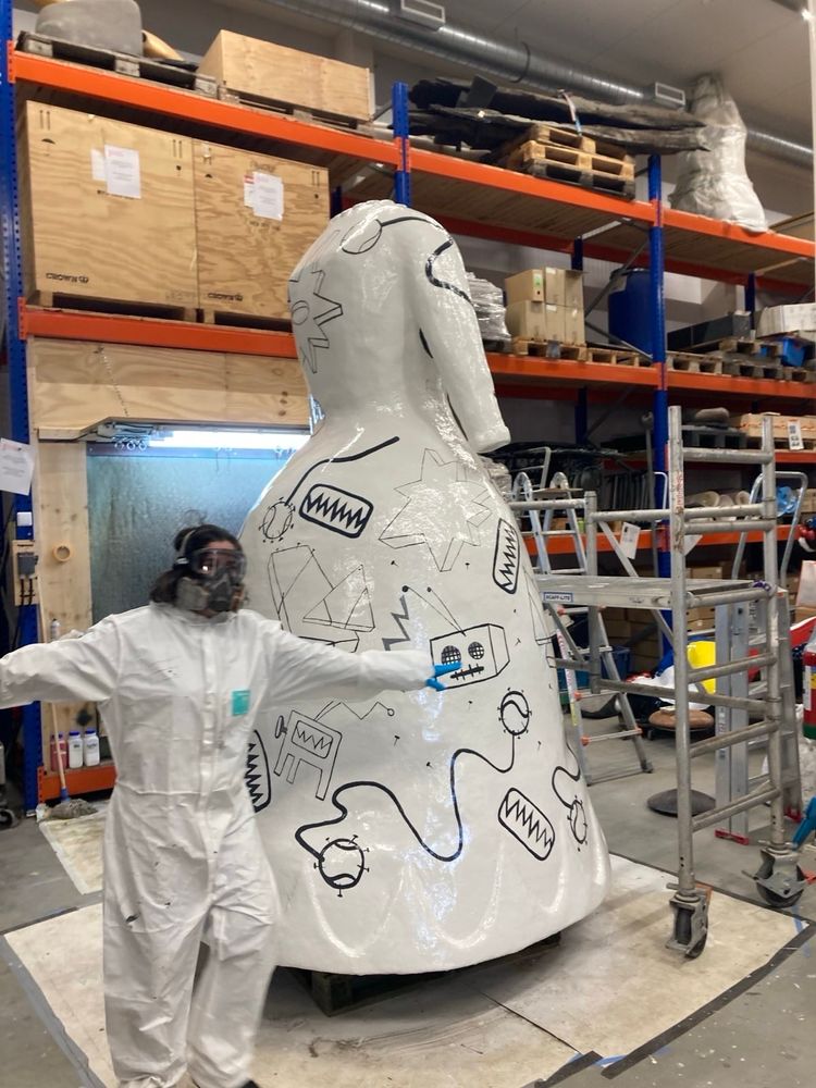 Na een paar weken uitharden kan ze dan terug naar haar plaats onder de bomen in het park de Plantage in Schiedam. Veel dank aan #Kunstwacht Delft voor het ter beschikking van hun werkruimte de afgelopen weken.