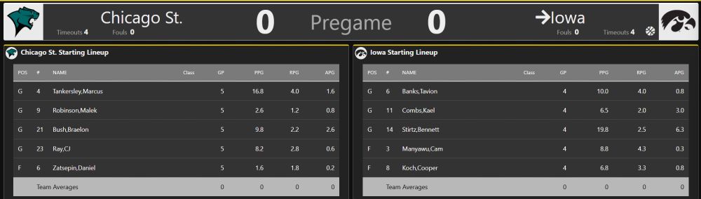 Kael Combs sticks in the lineup. Combs started against Chicago State over Isaia Howard. HC Ben McCollum said he wanted another ball handler in the lineup against CSU's press.