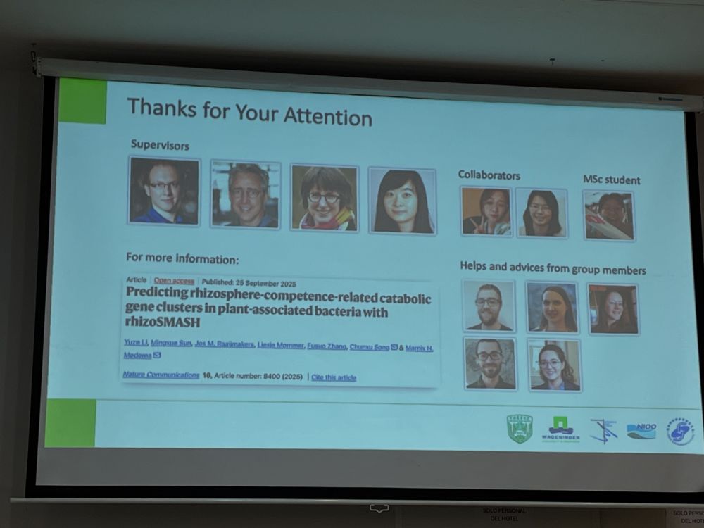 Yuze Li (collaboration with @marnixmedema.bsky.social Jos Raaijmakers) Predicting Rhizosphere Competence Related Catabolic Gene Clusters in plant associated bacteria with RhizoSMASH