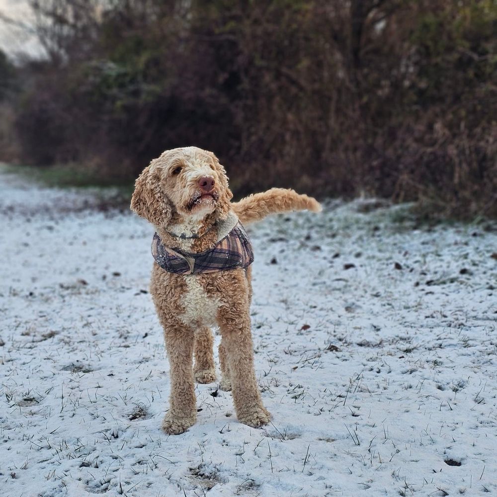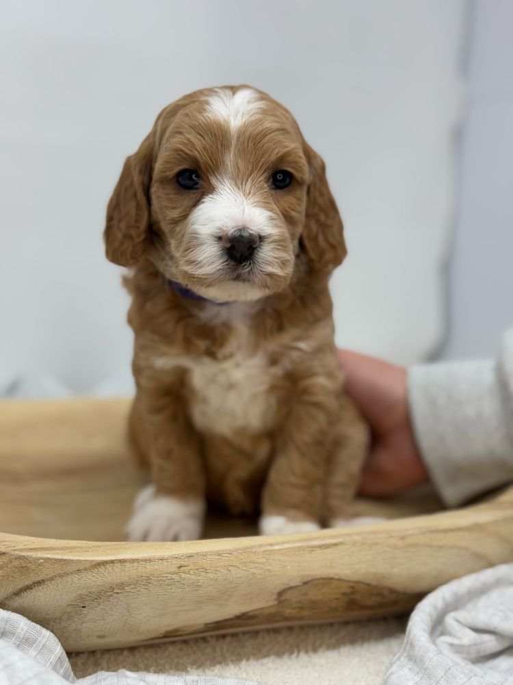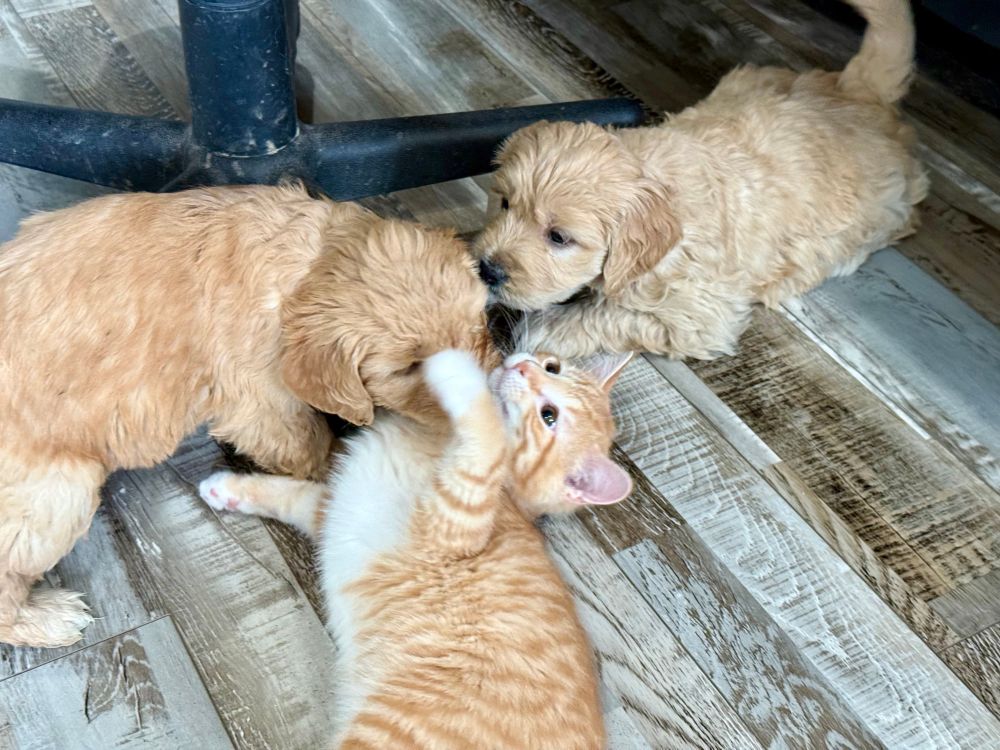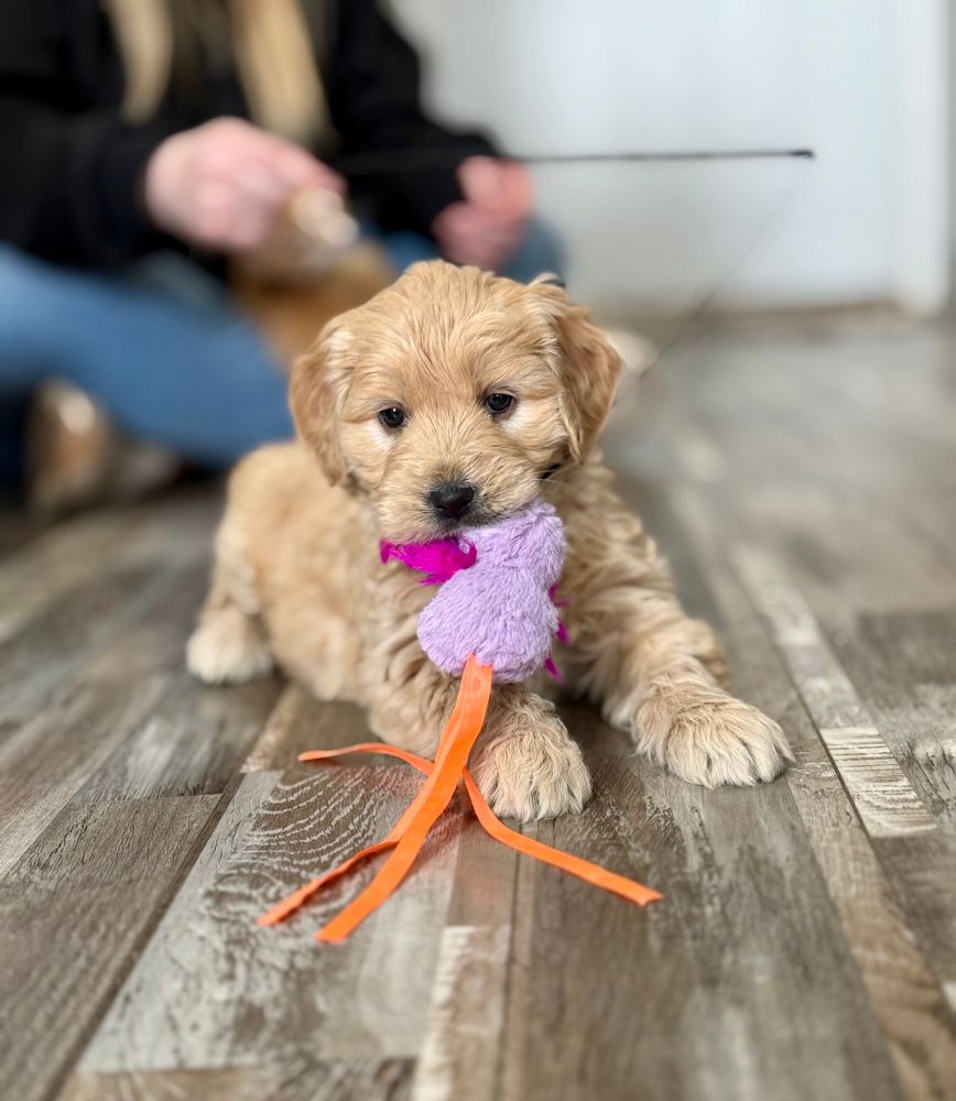 He is one of our medium Goldendoodle studs. He lives on 5 acres with his guardian family who loves him dearly. He is wonderful with kids. He can sit, shake, speak, roll over, stay, and more. He is calm and is referred to as an old soul. 😇❤️