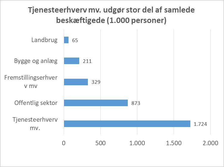 - 1,7 mio. beskæft. er fra tjenesteerhverv. Det er over halvdelen af det samlede beskæftigede.