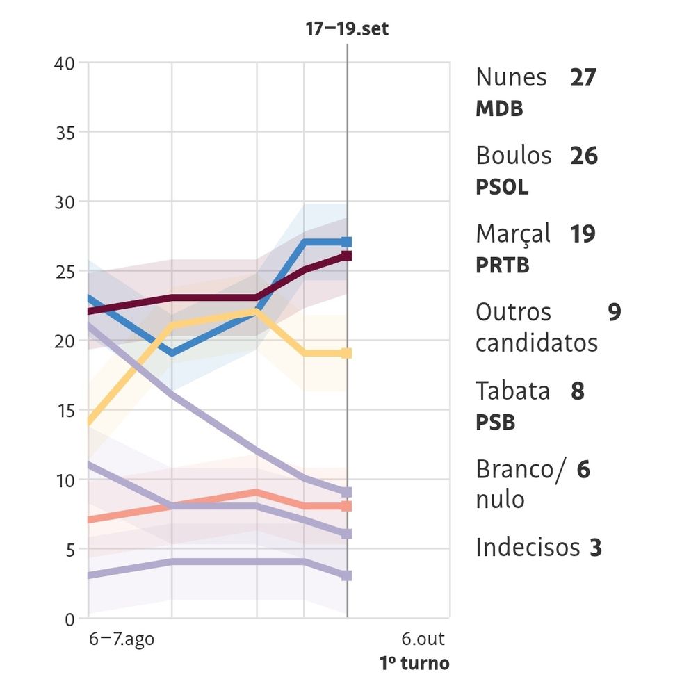 Além disso, apresenta a maior taxa de voto consolidado entre seus eleitores (40% contra 16% do Nunes).
