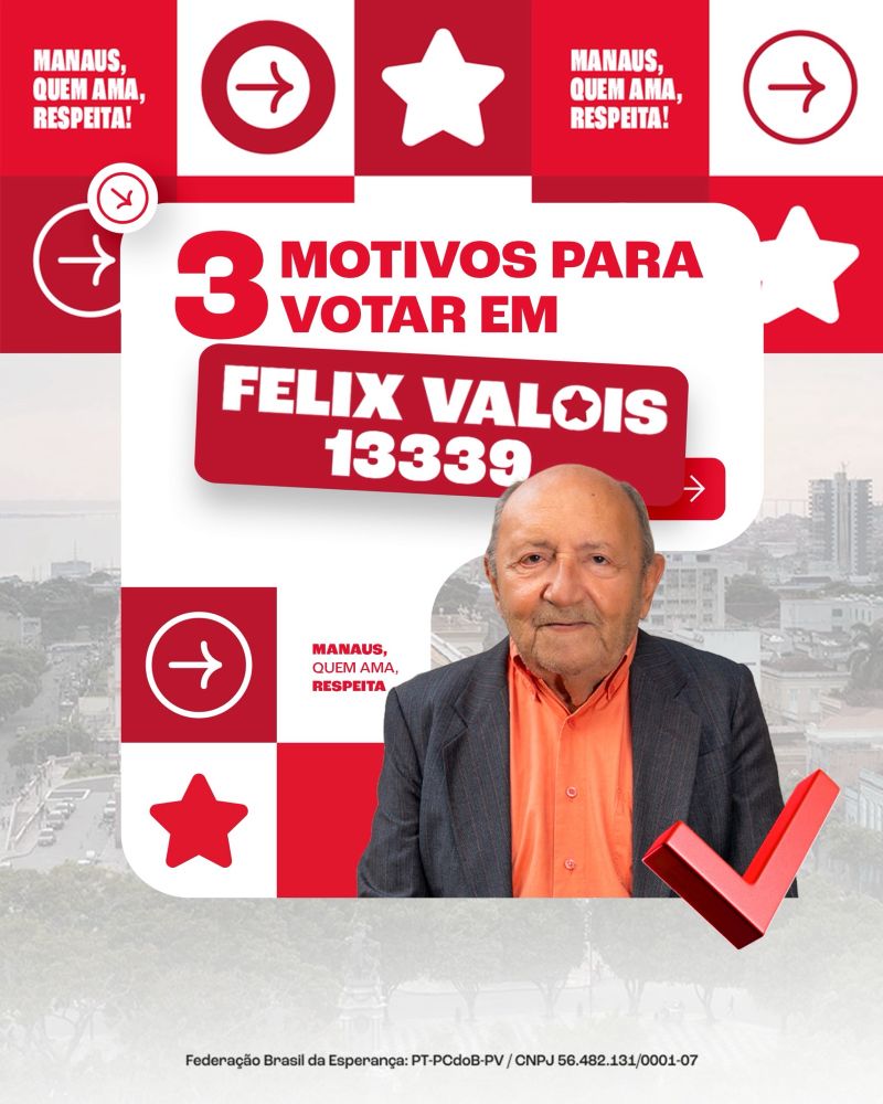 Agora para vereador em Manaus, vou pedir o seu voto para 13.339 - Félix Valois e Marcelo Ramos prefeito - 13!