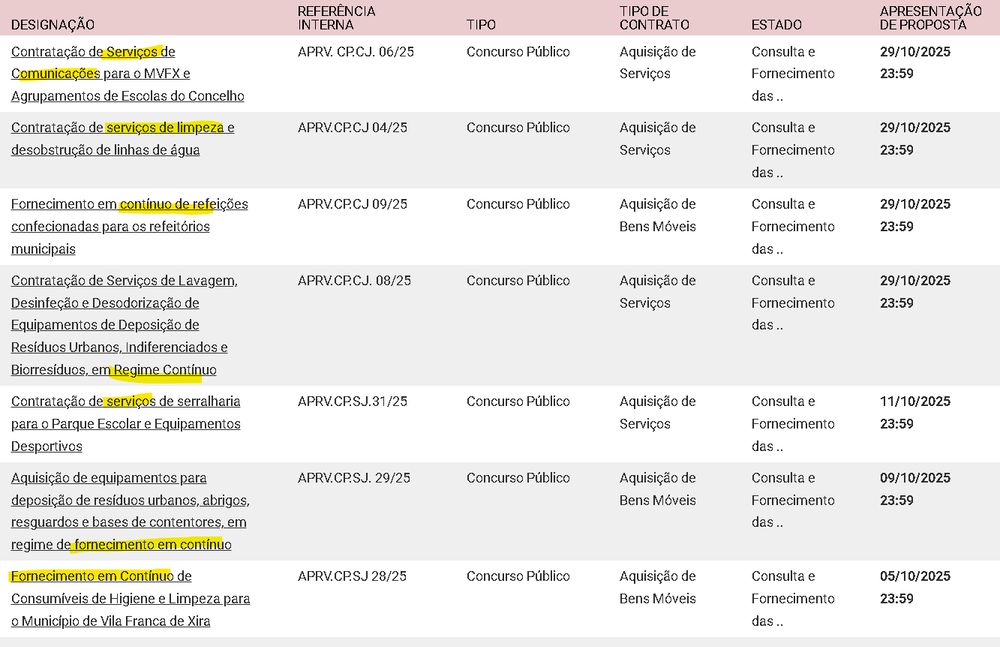 Este caso é para o fornecimento de pneus para a frota municipal. Fechado em Agosto deste ano. Prazo de execução: 36 meses!!!!