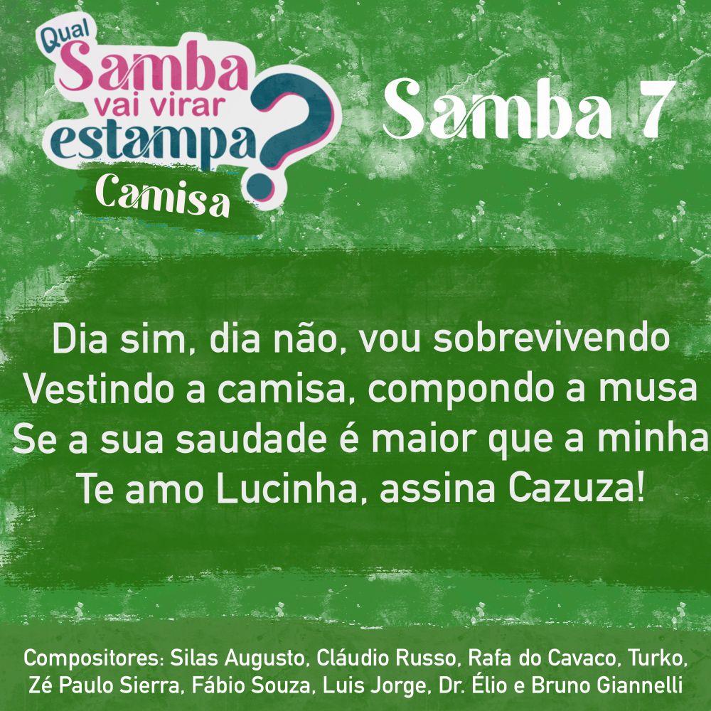 O Camisa Verde e Branco aclamou o samba 7, da parceria de Silas Augusto como a campeã, e em breve esse Sambaço vai virar estampa da Fevereiro’s