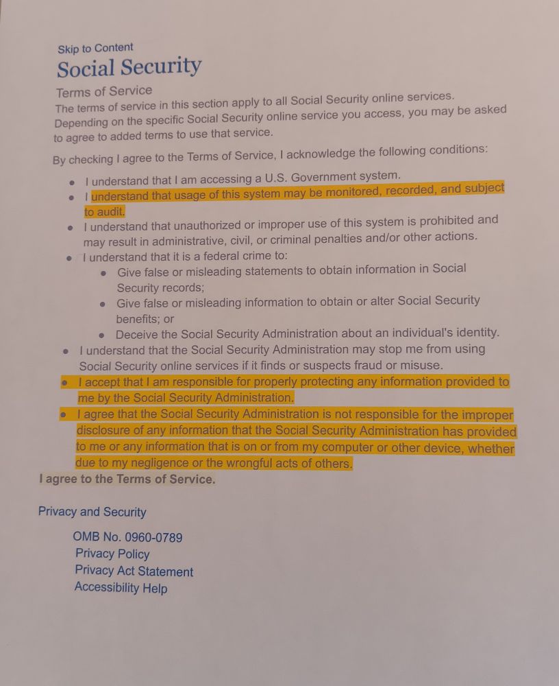 Be careful of the new terms of service at Social Security!