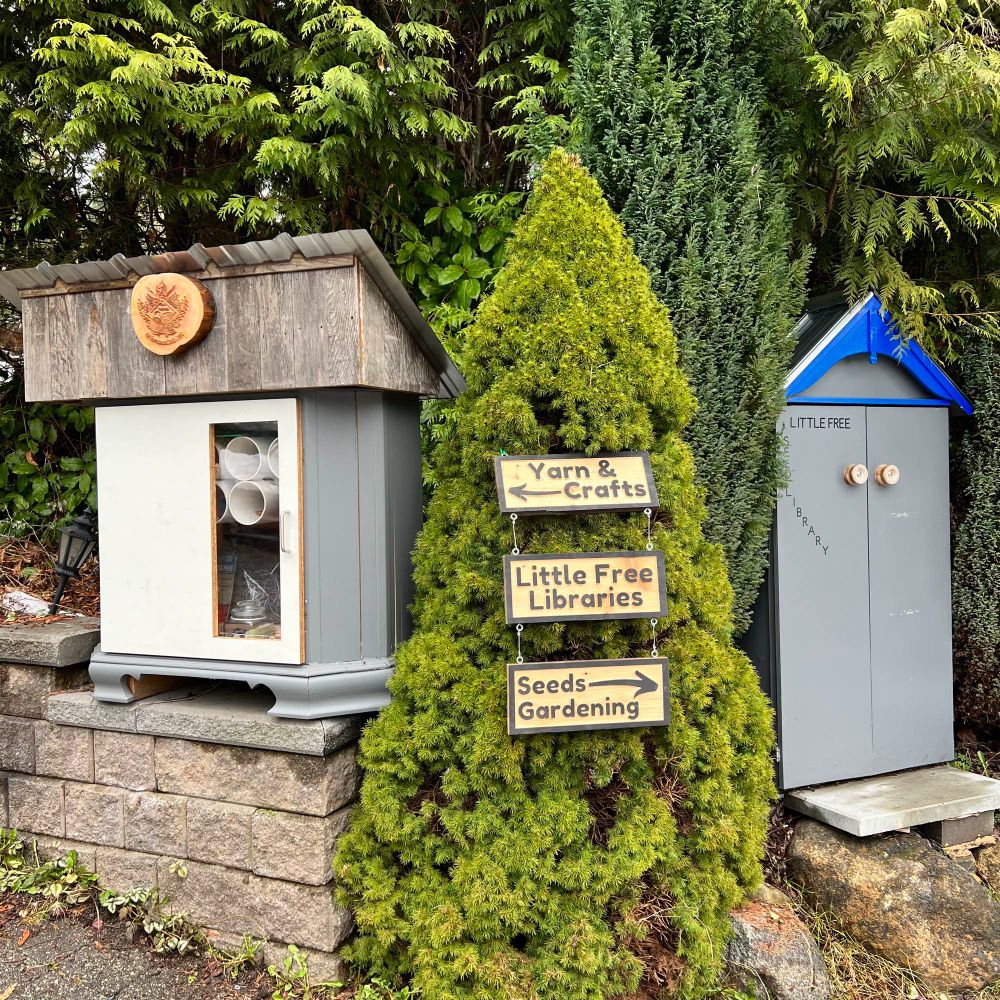 My little free fibre library, seed library and car library!
