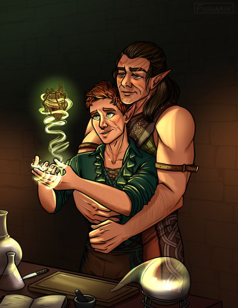 3: @finnamin.bsky.social: c0mmd, the only piece of #SorchaOC and #Rolan I have so far