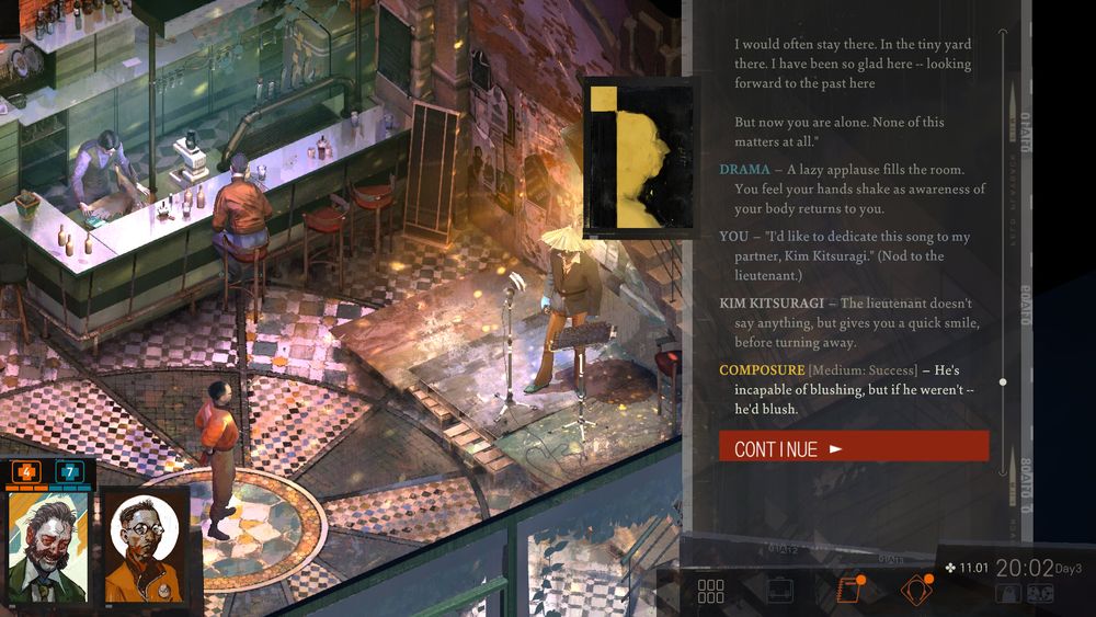Playing Disco Elysium and pure glee filled me when I dedicated my karaoke song to Kim.