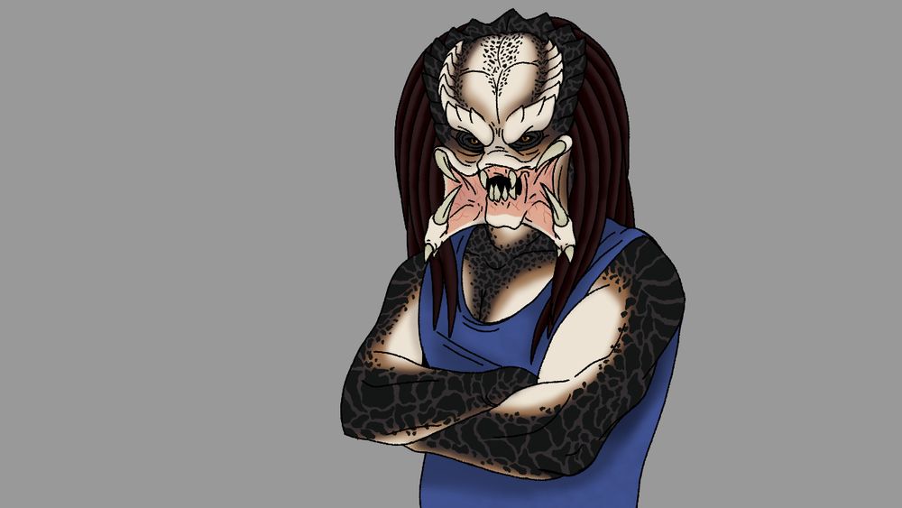 A gift pic for @saruk.bsky.social who's as much taken by the notion of TFs into Yautja as I (if not moreso). Lines by InterXpecial, coloured by my buddy RetroRaccoon.