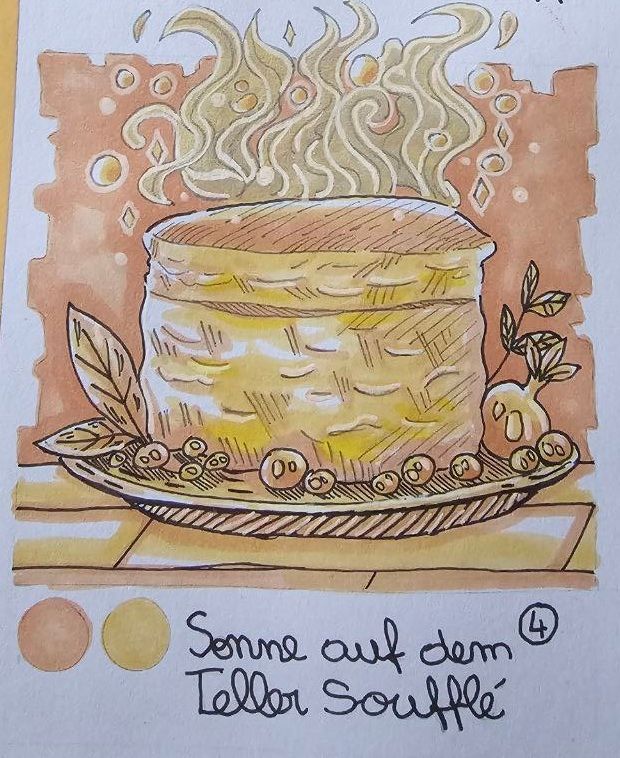 #huevember2025 #huevember #sunonaplatesouffle #fantasyfood #magicalkitchen #yellowaesthetic #cozyart #fantasyart #dessertart #lightandmagic