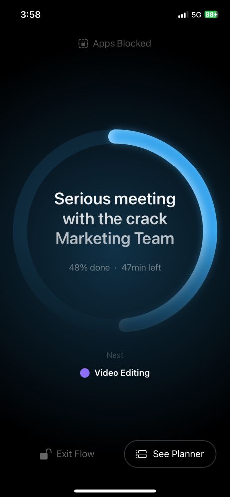 This one lets you track your current time block progress and block distracting apps with the Flow button.