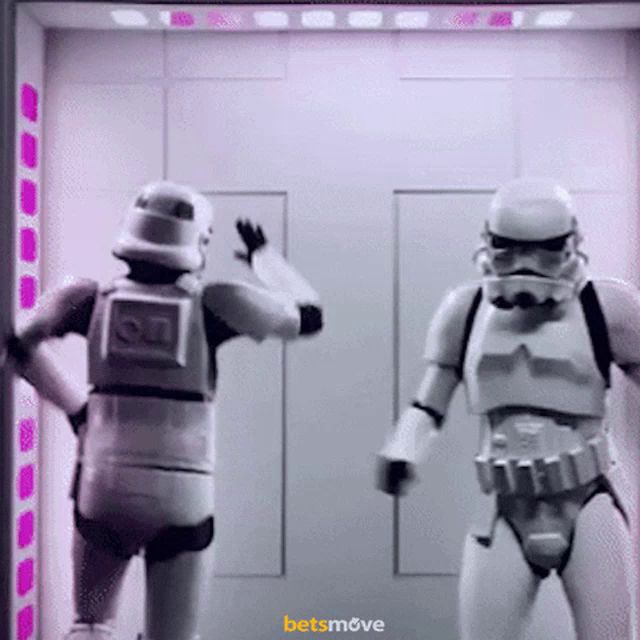 two stormtroopers are standing next to each other with the words betsmove visible in the corner