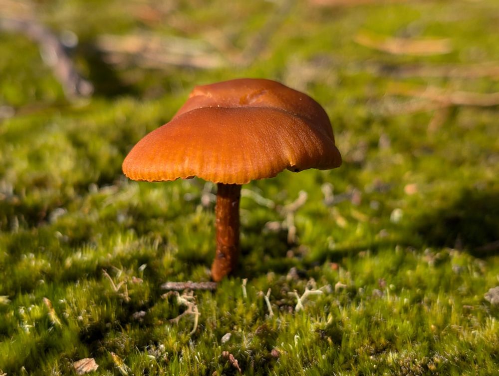 A mushroom, in moss, out on a local common.