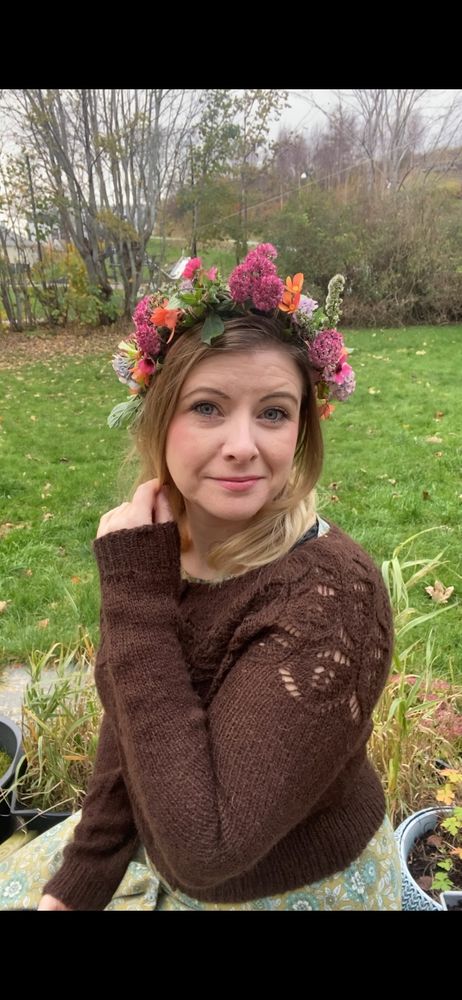 Just a few flowers left in my garden, and today I made a wreath to go with my brown #kudzucardigan
