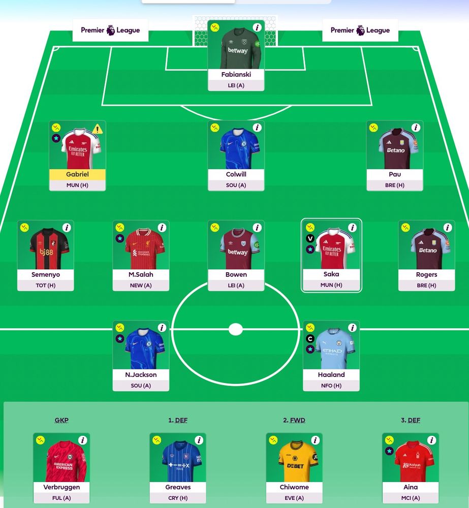 Skulle gjerne gjort kunWelbeck og Mbeumo ut (beholdt Wissa), men tynt med midtbaner til 6,0 og ned.