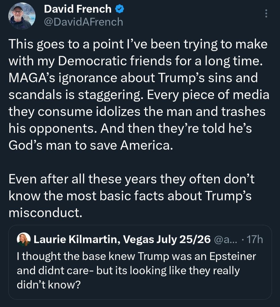 And it's why when I hear Dems talk about importance of "messaging" in reaching voters who went for Trump (or Rs genrly) last time, I'm skeptical.