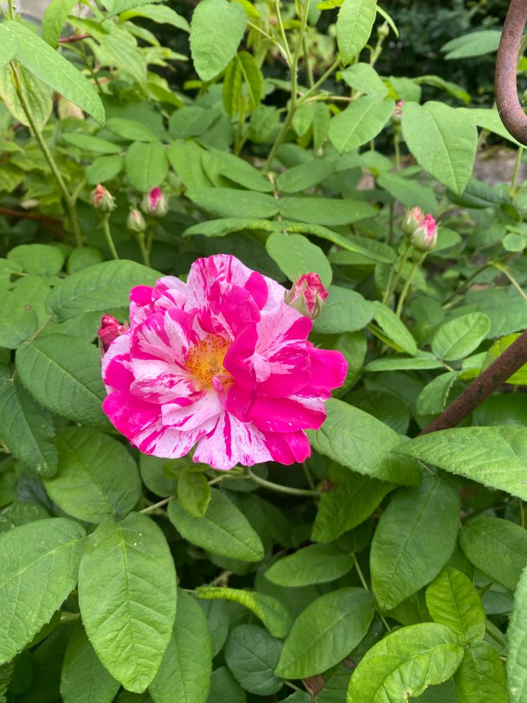 Nein. Einmalblühend, Rosa gallica Rosa Mundi; hier nur so 50-60cm. Aber meist gestreifte Blüten 🥰 Eine ganz alte Rose.