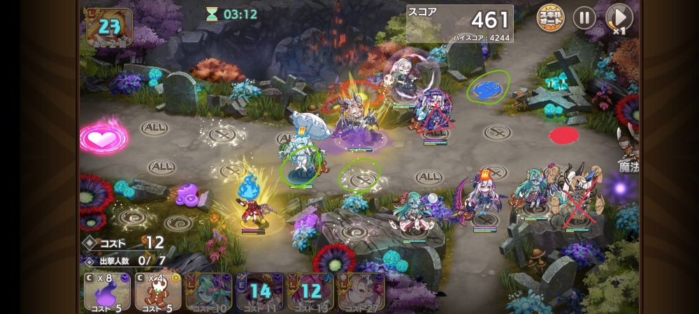 バツ印したメジエを外して赤で塗りつぶしたところに通常ディフォーラを配置しました。