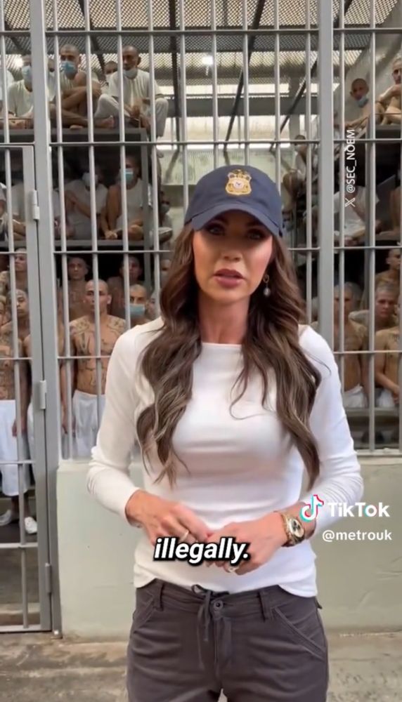 Kristi Noem, dog killer, at an El Salvadoran prison where all rights have been suspended.