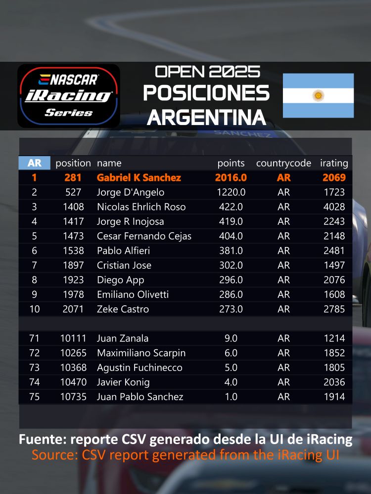 Semana rara, difícil, con mucha confianza en el auto, stints sólidos, pero sin poder redondear bien ni una carrera. Lastimados los ratings y ni la repe me quedó con la actualización de ayer.