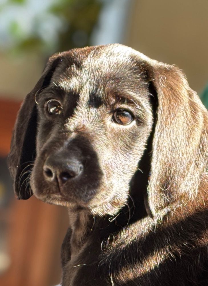 My son and his wife adopted Luci last month. This was her first Christmas! Such a smart pup!