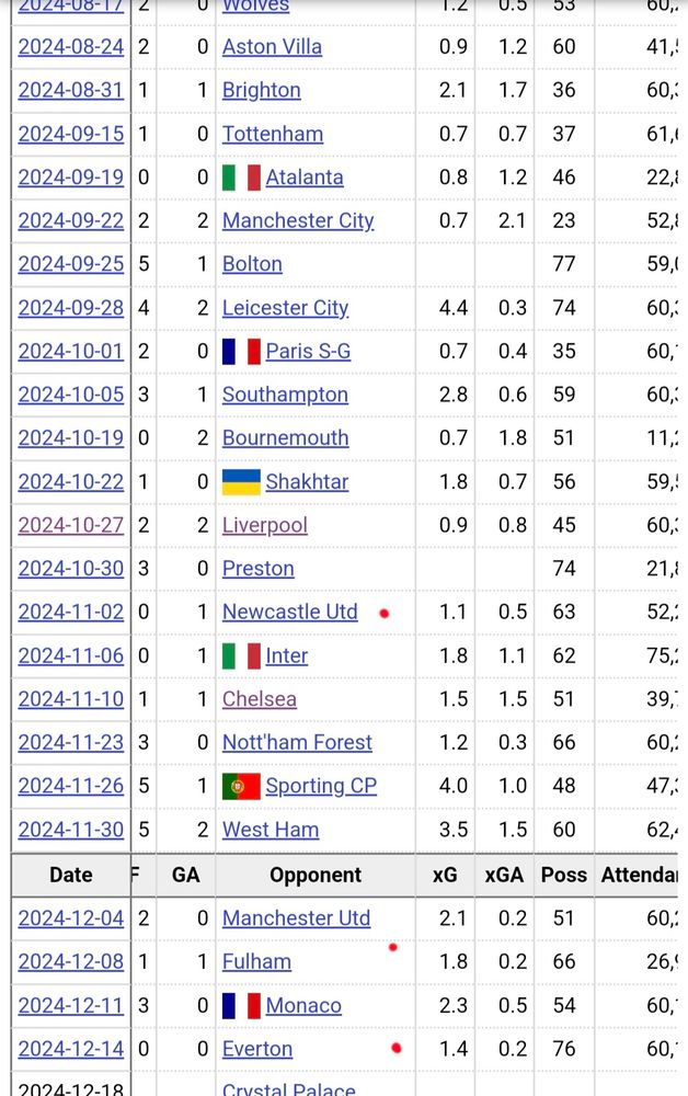 The highlighted matches in the right side picture are the matches Arsenal have lost 0-1 and drew 1-1 and 0-0, respectively.