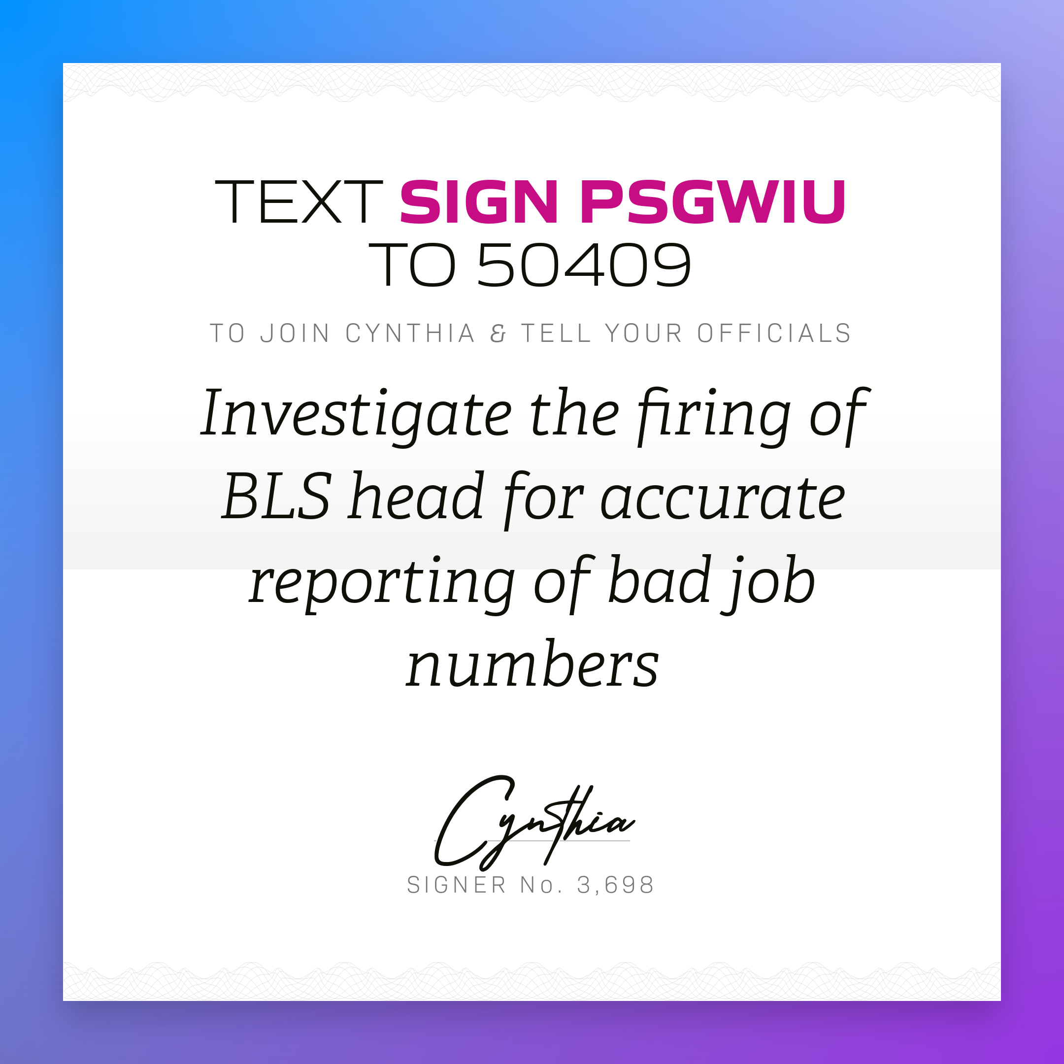 Write Congress. Text ‘sign PKQVZZ’ to 50409