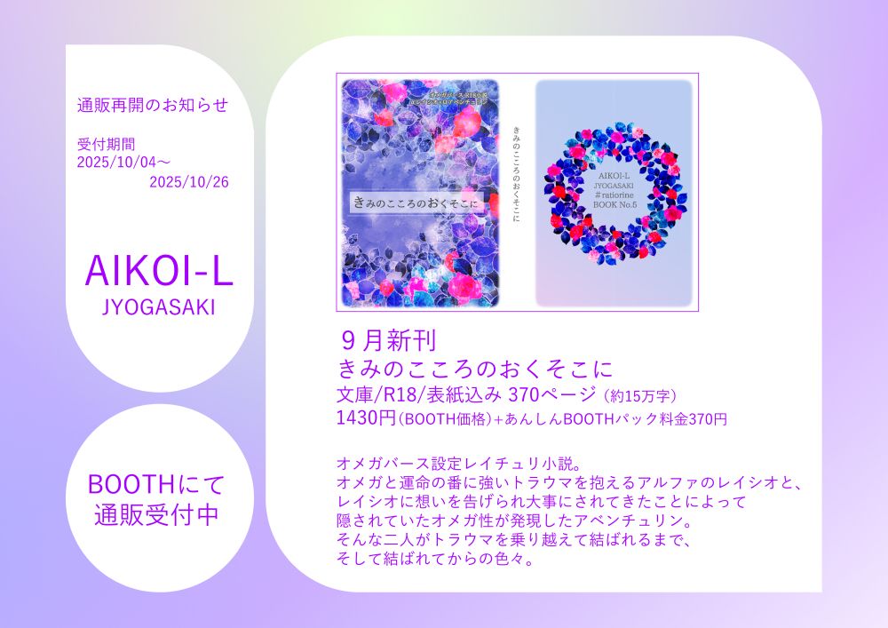 オメガと運命の番に強いトラウマがあるシオと、隠れオメガだったチュリ。二人がトラウマを乗り越え結ばれるまで+結ばれてからの色々を書いた長編
