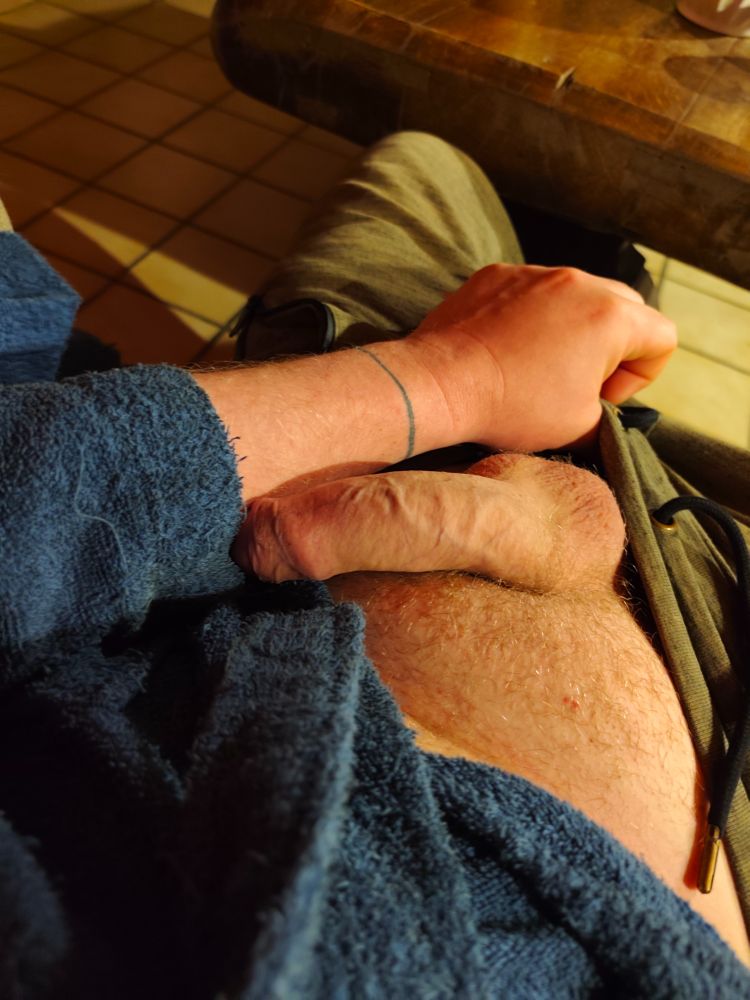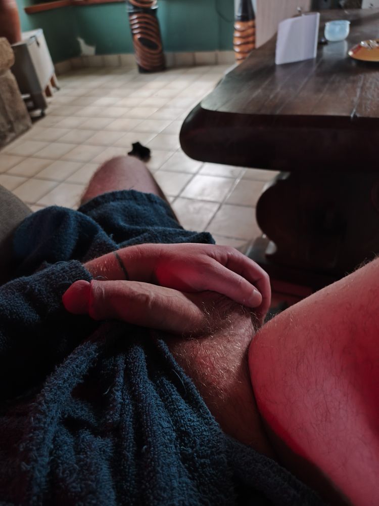 Dès que je rentre du taf . Elle devient raide 😛 #gay #branlette #jus