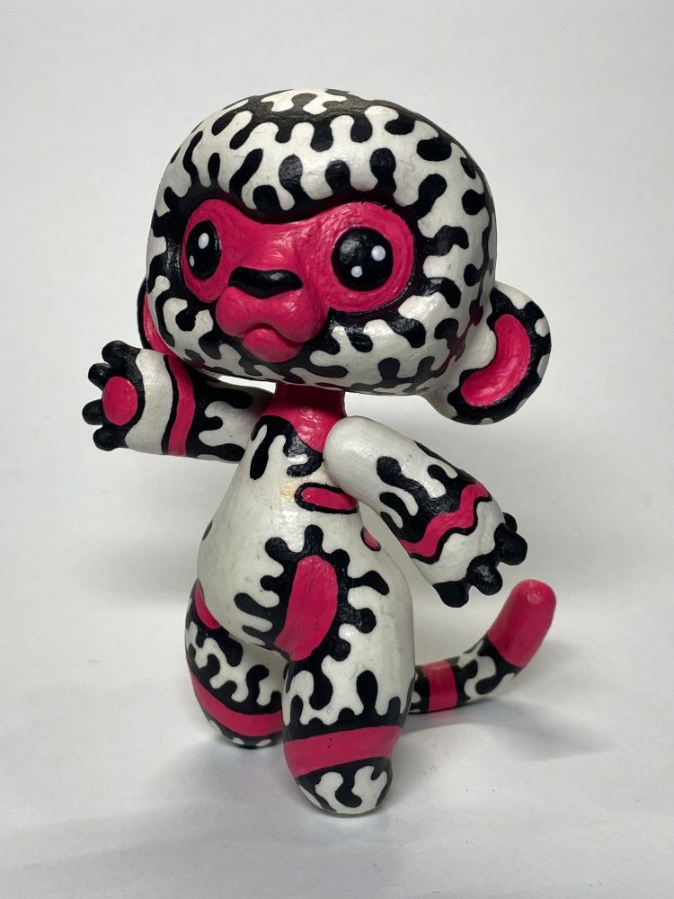 Mimik monkey boy with white fur, and black and red stripes