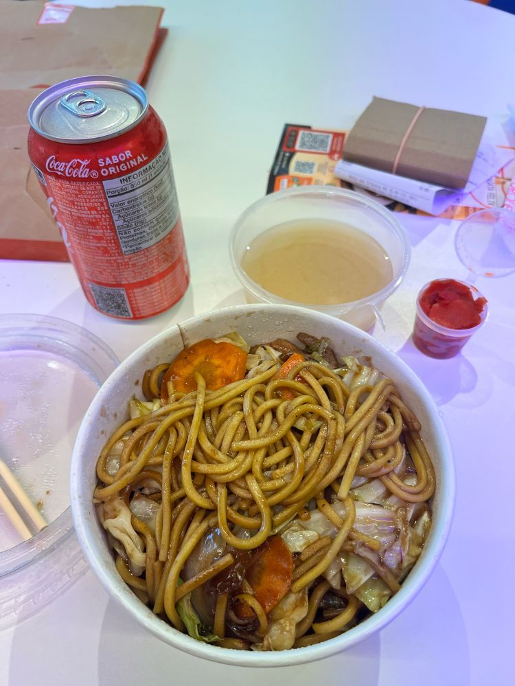 tava c muita vontade de tomar um missoshiro e tava procurando um restaurante que tivesse e tambem um prato principal gostoso. acabei pedindo esse yakisoba que ja vem com um missoshiro e um gengibre em conversa. paguei 38,20 e ta tudo MUITO gostoso