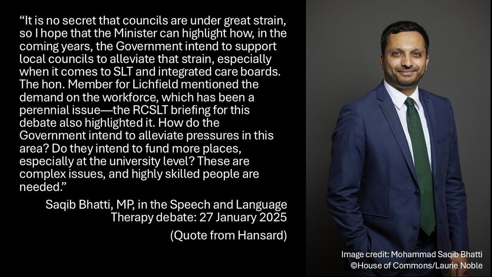 Shockat Adam @shockatadam.bsky.social at the #InvestInSLT Speech and Language Therapy debate on 27 January 2025: hansard.parliament.uk/commons/2025...