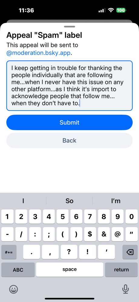@moderation.bsky.app You keep putting me on punishment for just saying thanks to each follower that joins me…it’s really frustrating, so…I’ve appealed the label of SPAM ACCOUNT again🙉🙉🙉🙉🙉🙉🙈🙈🙈🙈🙈🙈🙈🙈😠