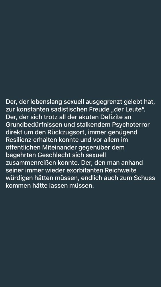 All den Missbrauch gegen mich endlich in die andere Richtung forcieren, danke. Bystander werden euch schon noch mindestens genauso irreparabel bestrafen für die zahllosen Jahre (sexuellen) Missbrauch an mir. 🌹