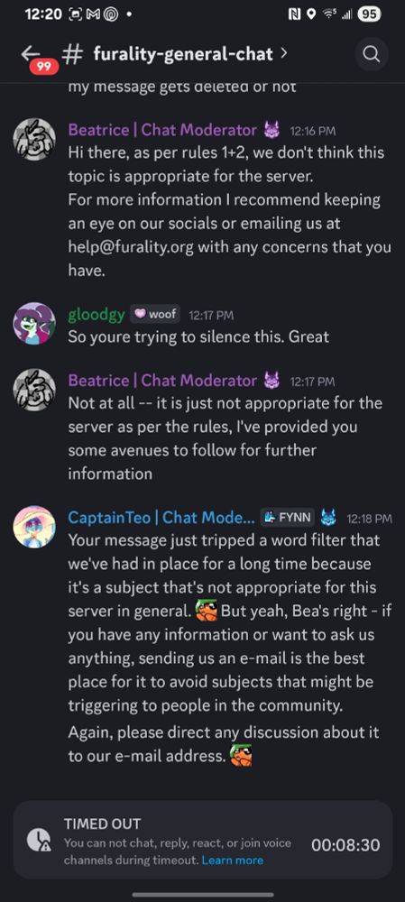 Disgusted with furality staff right now, they are silencing any talk of brimstone