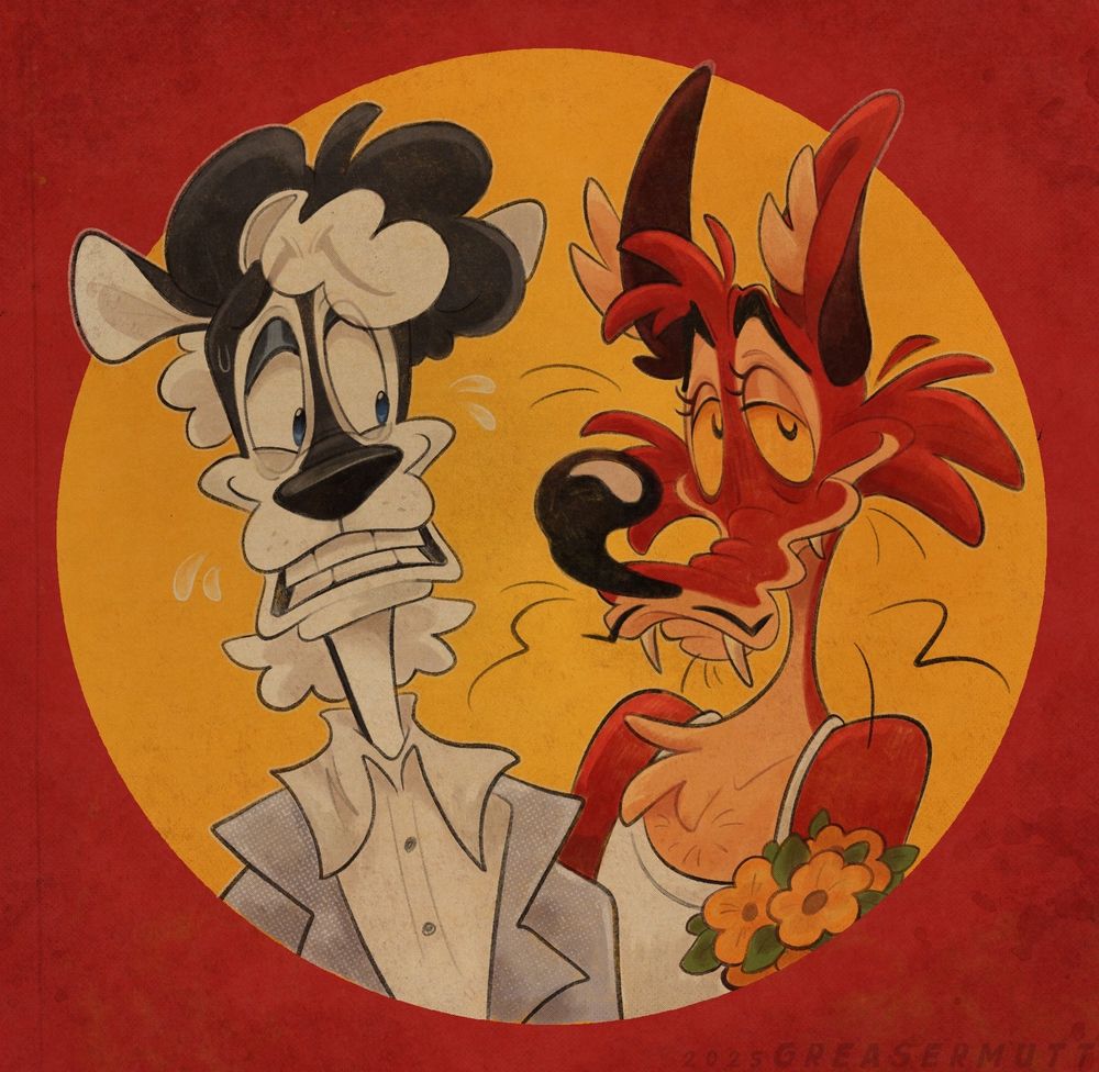 Birthday gift for @greasermutt.bsky.social, love ya skunker 💞🐺 #art #furry