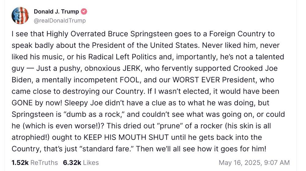 Wow. The attack on Bruce Springsteen today is frightening. You're in a very dark place America. Canada needs to extend a warm welcome to American scholars, scientists and artists. You're welcome in the north Bruce.