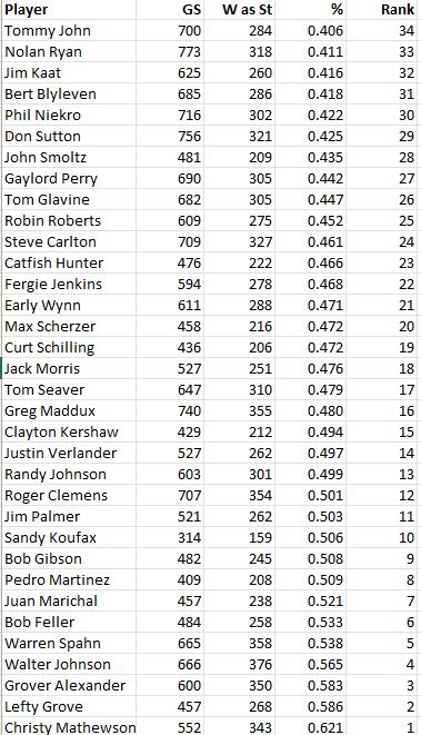350-156, 3.10 ERA, 61 SHO, 4931 SO