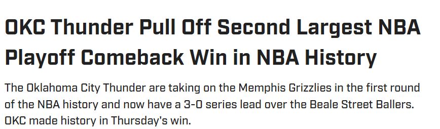 OKC will have a 17/18 win margin. That's the 6th largest margin in 79 Finals. None of the 5 teams with 17 or higher win margin has lost. Teams with 13+ win margin are 13-1.