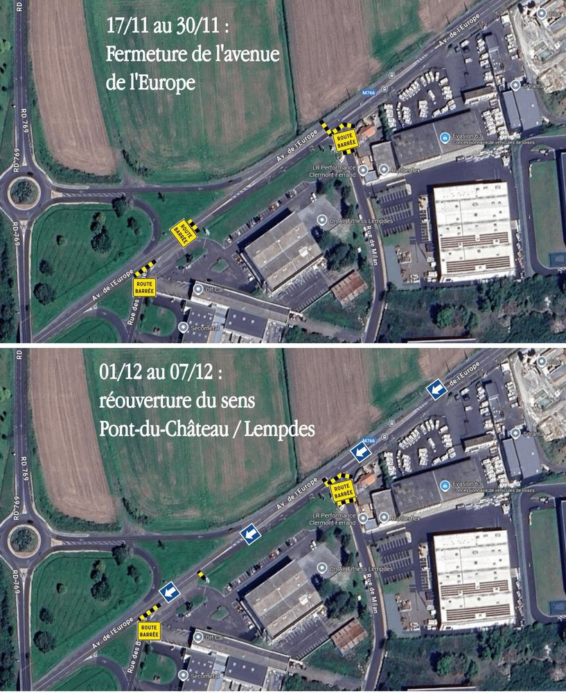 🚧 A compter du 17/11/25, travaux de réfection des réseaux humides (eaux usées, pluviales, potable) puis d’aménagement de surface (enrobés) sur le carrefour de l’avenue de l’Europe et de la rue de Milan.