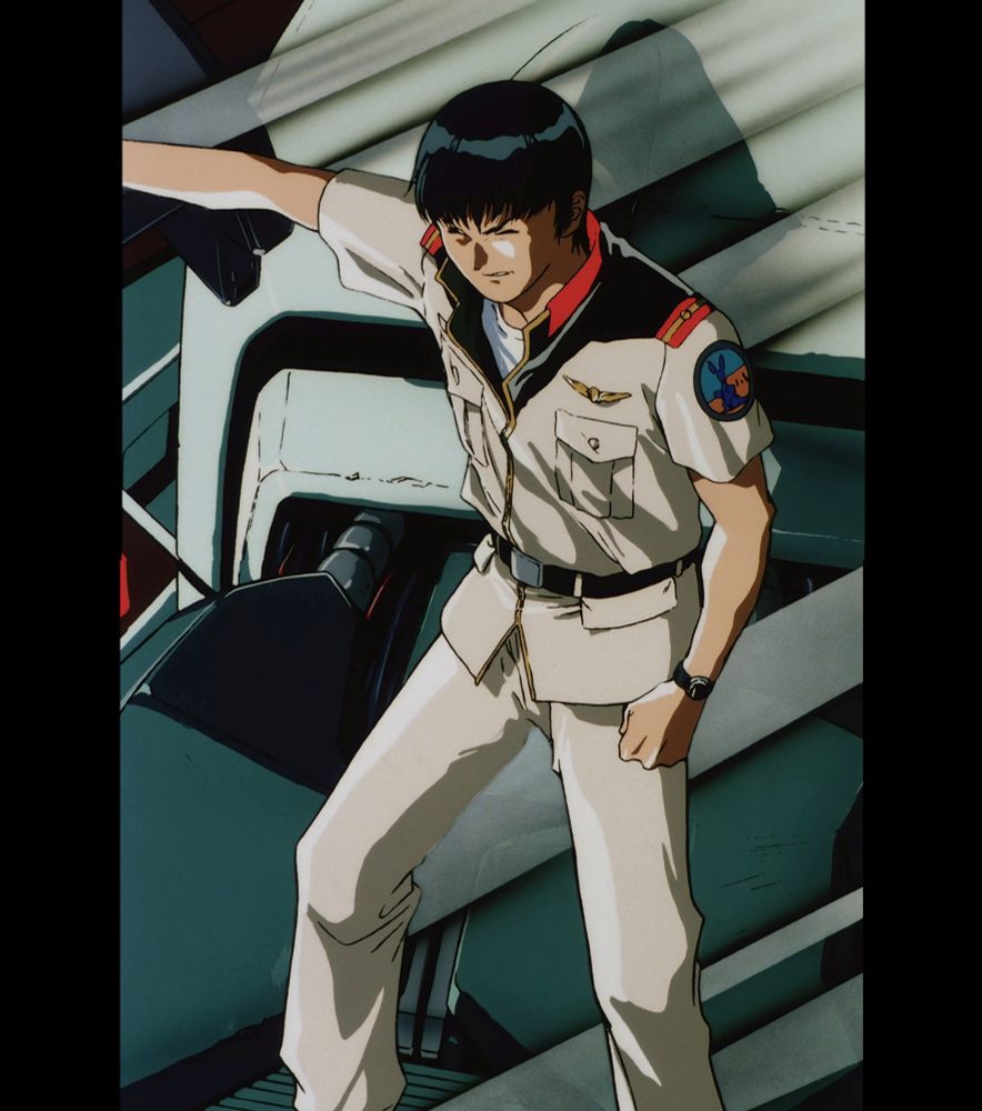 Gundam 0083, Episode 2: Kou Uraki is bathed in the harsh light of morning after narrowly surviving a confrontation with Anavel Gato
