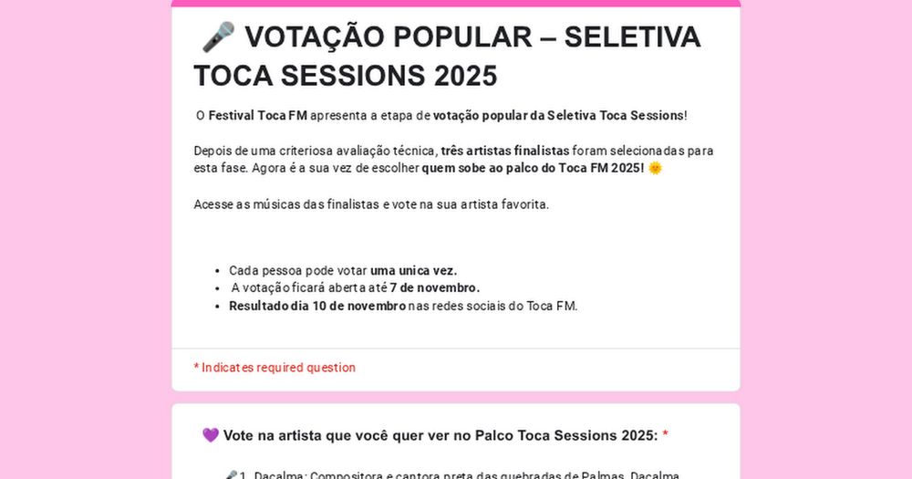 🎤 VOTAÇÃO POPULAR – SELETIVA TOCA SESSIONS 2025